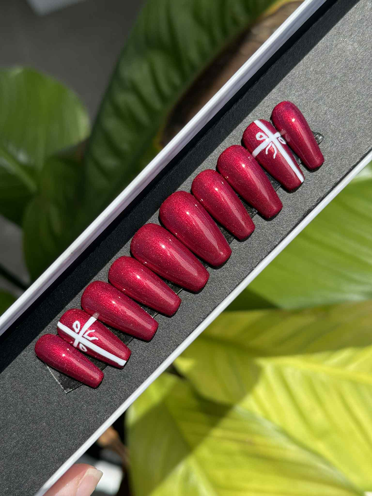 A beautiful red metallic polish with a pretty little bow for those who want a simple christmas feel.